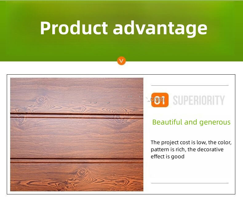 1.The wall sandwich panel is the most advanced and eco-friendly insulation material in the world. With the help of the back aluminum foil, the thermal insulation effect achieves the best. 2. The unique structure prevents the heat loss in winter. Meanwhile it reduces the heat of the summer sunshine. 3. It is reserved with superior self-cleaning, weather resistance, corrosion resistance and acid& alkali resistance performance. 4. Light weight with 3.7Kgs/m2 makes the installation easy. 5. The installation process is clean and tidy without any noise and dust, construction waste. 6. Different selections of accessories meet different effects. 7. High quality and stable performance, manufactured in CNC automation production line, the product pass rate can reach 99.9% with stable chemical structure and physical structure.